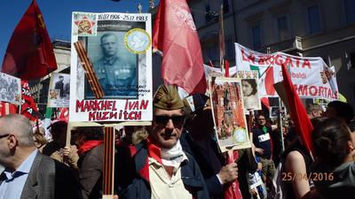 Итальянцы не забывают подвиг своих отцов и дедов, и по инициативе Миланского отделения Возрожденной Коммунистической партии впервые в Италии прошел Бессмертный полк. По примеру России, люди несли портреты своих родственников, партизан, и всех тех, кто героически сражался за свободу против коричневой чумы.
