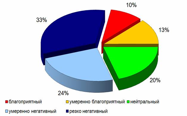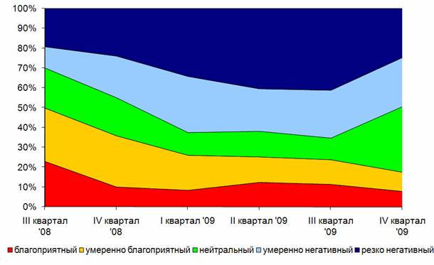 Стоит отметить, что во II и III кварталах 2009 года наряду с повышением резко негативной составляющей, также произошло увеличение благоприятной составляющей и существенно уменьшилось количество нейтральной.