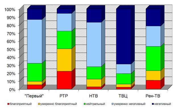 Как видно из графика, структура информационного фона в течение 2009 года имела тенденцию к повышению негативной составляющей вплоть до III квартала и к постепенной нейтрализации телеэфира в IV Квартале.