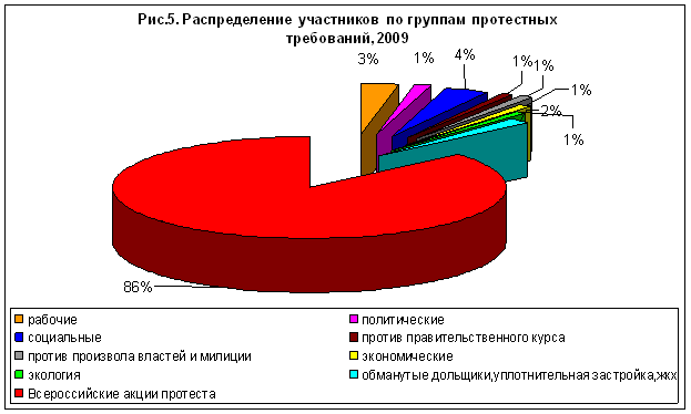В них приняло участие 86% всех участников (в 2008 г. – 94%), что свидетельствует о проявлении большей активности в других областях (нарастание недовольства в области трудовых прав, социальной сферы, недовольство курсом правительства и проч.).