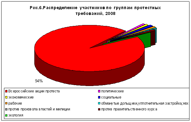 Суммарно в структуре протестных выступлений (по числу участников), как и в прошлом году на первом месте находятся Всероссийские акции протеста (рис.5,6).