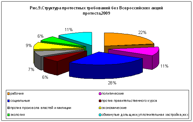 В целом, 2009 год по сравнению с показателями прошлого года отличается некоторым спадом в протестном движении в большинстве регионов России (рис.12).