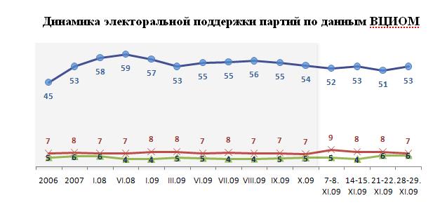 Итоги 2009 - уровень электоральной поддержки парламентских партий