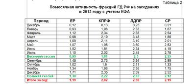 В целом, в 2012 году депутаты фракции КПРФ были одними из самых активных в Государственной Думе ФС РФ.