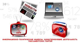 В связи с этим на основании контент-анализа публикаций федеральных медиа-источников (прессы, радио, телевидения и информагенств), используя данные системы анализа и мониторинга СМИ «Медиалогия», сектор политического мониторинга Отдела ЦК КПРФ по информационно-аналитической работе и проведению выборных кампаний рассчитывает информационно-политические индексы, которые определяются как доля упоминаний о парламентских партиях в информационном пространстве.
