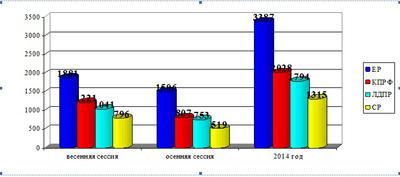 Осенняя сессия | 1506 (42,0) | 807 (22,5) | 753 (21,0) | 519 (14,4) |