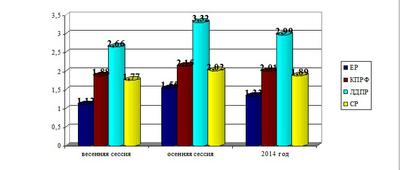 По сравнению с 2013 г. активность фракций «ЕР» и ЛДПР несколько выросла, а КПРФ и «СР» - уменьшилась.