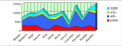 - Доля КПРФ в различные месяцы года колебалась в суммарном эфире в пределах от 8% (в мае) до 40% (в январе).