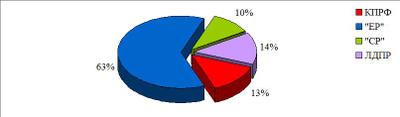 Что касается синхрона (прямой речи) партийцев, то его структура аналогична: единороссам было предоставлено 63% новостного синхрона, либерал-демократам 14%, справороссам 10%.