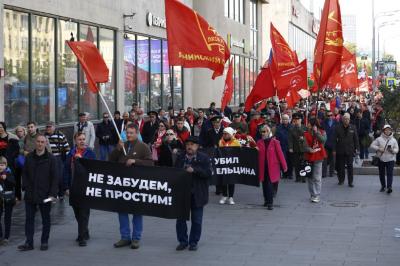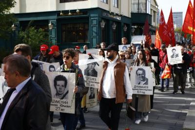 После выступлений, состоялось траурное шествие в память о погибших в дни трагических событий «Черного Октября» 1993 года 32 года назад. В начале колонны видны транспарант «Их убил режим Ельцина» и портреты погибших — героев тех трагических дней. Лозунги «Нет прощения палачам!» «Террор рожден властью в октябре 1993 года», «Не забудем! Не простим!», «Октябрь 1993 – преступление без срока давности» говорят о том, что возмездие для убийц неотвратимо.