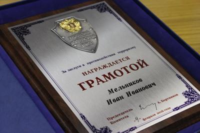 Иван Мельников награжден Грамотой «За заслуги в противодействии терроризму»