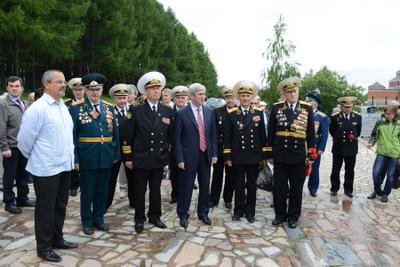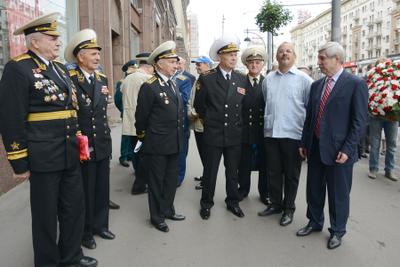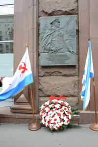 Утром состоялось возложение цветов к мемориальной доске Адмиралу Флота Советского Союза, Герою Советского Союза Н.Г. Кузнецову. После участники мероприятия вместе на автобусе переместились на Поклонную гору. Там они посетили экспозицию Военно-Морского Флота и отдали дань памяти морякам надводных кораблей и подводных лодок.