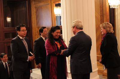 С Вьетнамской стороны: Посол СРВ в России Нгуен Тхань Шон, председатель Союза женщин Вьетнама, депутат Национального собрания СРВ Нгуен Тхи Тхань Хоа, другие официальные лица.