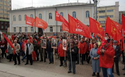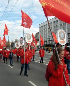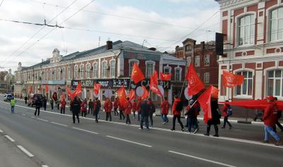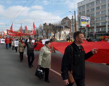В 9 часов 30 минут колонна коммунистов и сторонников КПРФ двинулась по проспекту Ленина к площади Революции. Впереди шла молодежная группа: коммунисты и комсомольцы несли партийные флаги КПРФ и флаги общественных объединений, большое полотнище флага СССР. Из динамиков машины сопровождения лились советские песни, звучали первомайские лозунги и речёвки, которые подхватывали и повторяли хором участники акции.