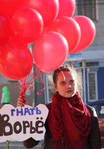 Достаточно символично в этот день – 1 апреля – в небо были запущены воздушные шары с карикатурным изображением Медведева, а также забавных облачков, на которых были изображены «символы» нынешней власти: «Коррупция», «Кумовство» и т.д.