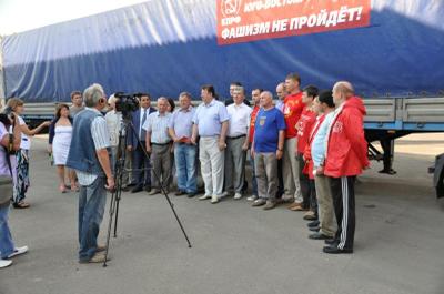 Мы не должны снижать темпы работы: каждую среду будет отправляться очередной конвой с гуманитарным грузом. Мы будем поддерживать братский народ, борющийся с киевской хунтой, развязавшей геноцид собственного народа, до тех пор, пока не победим. Совместными усилиями мы уничтожим ростки фашизма, пробившиеся на братской земле», - отметил Владимир Кашин.