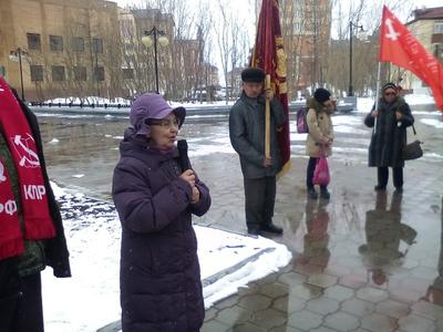 Первый секретарь Ямало-Ненецкого окружкома КПРФ Кукушкина Е.М., выступая на митинге, отметила величие В.И. Ленина как гениального политика, умеющего доводить свою точку зрения до масс, рассказала о значении апрельских тезисов. Выступили также сторонники партии, которые пришли в этот знаменательный день к памятнику вождю мирового пролетариата, создателю первого в мире социалистического государства Владимиру Ильичу Ленину.