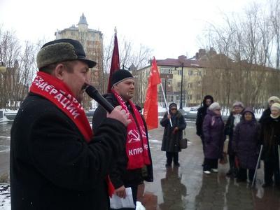 22 апреля в Салехарде состоялся митинг, посвященный 145-летию со дня рождения В.И.Ленина. Митинг открыл первый секретарь Салехардского горкома КПРФ А.А. Зверев.