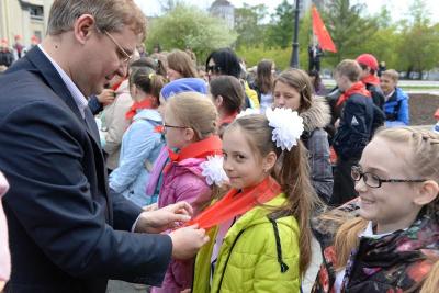 Почетная миссия — повязать галстуки — традиционно выпала коммунистам, среди которых были второй секретарь обкома КПРФ Ренат Сулейманов, секретарь по организационной работе областного комитета КПРФ Алексей Русаков, депутаты Законодательного собрания Владимир Карпов, Андрей Жирнов, Роман Яковлев, Оксана Марченко, Евгений Коновалов и Евгений Смышляев, депутаты Городского совета Иван Конобеев, Глеб Черепанов, Олег Волобуев, Александр Бурмистров, Сергей Сухоруков, а также представители мэрии Артем Скатов и Сергей Клестов. Все они пришли поздравить юных пионеров с этим светлым и добрым праздником.