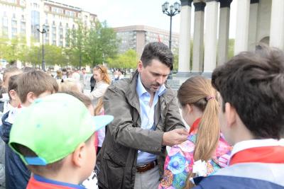 – Вы вступаете в пионерскую организацию, которая имеет 95-летнию историю, вы вступаете в год 100-летия Великой Октябрьской социалистической революции, изменившей весь ход мировой истории. Вы вступаете в организацию, которая была создана второй конференцией Российского комсомола в 1922 году, а в 1924 году получила имя Владимира Ильича Ленина. Эта организация награждена двумя орденами Ленина за то, что пионеры активно участвовали в жизни нашей страны, – подчеркнул депутат. – Пионерская организация насчитывала более 20 миллионов человек, но и сегодня в ее ряды во многих городах нашей страны, включая столицу нашей Родины город Москва, придут сотни тысячи новых пионеров. Пионерская организация — это и хорошая учеба и спорт. Традицией пионерской организации всегда были клубы «Кожаный мяч», «Золотая шайба», «Белая Ладья». Она занималась Тимуровским движением, помогая старшему поколению. Я желаю, чтобы все вы хорошо учились, чтобы вы любили нашу Родину, и чтобы вы росли достойными гражданами нашей великой страны.