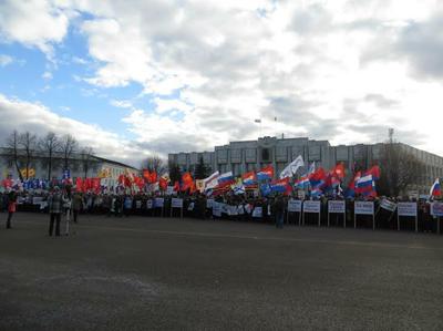 Прошедший 11 марта митинг стал продолжением мероприятий областной организации КПРФ. Так, еще 21 февраля был проведен первый митинг, 2 марта – сход ярославцев в поддержку борьбы украинского народа с нашествием неонацистов, захвативших власть в Киеве.