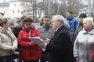 28 апреля на Советской площади, накануне заседания Ярославской областной Думы, состоялась встреча депутатов от фракции КПРФ с работниками ООО «Арсенал-Коммерц», которые уже почти три недели не допускаются на территорию завода.