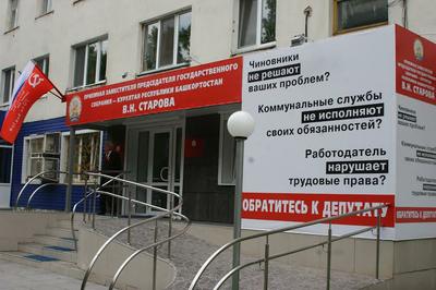 В этот же день состоялось еще одно важное мероприятие – в Стерлитамаке открылась общественная приемная заместителя председателя Госсобрания Вадима Старова. В торжественном открытии приняли участие Юрий Афонин, Юнир Кутлугужин, депутаты Госсобрания от Стерлитамака Николай Никитин и Владислав Беглов, зам. главы городской администрации Владимир Куликов, представители прессы и общественности. В приветственном слове Ю.В. Афонин подчеркнул, что открытие приемной – это часть большого плана партии по усилению работы депутатов с населением. Это связано, сказал секретарь ЦК КПРФ, с дальнейшим углублением социально-экономического кризиса, когда людям особенно требуется помощь и поддержка.
