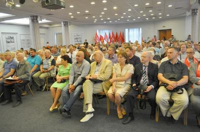 Заместитель Председателя ЦК КПРФ Ю.В. Афонин передал всем собравшимся приветствие от лидера партии Геннадия Андреевича Зюганова. В своем выступлении Юрий Вячеславович затронул широкий круг проблем и вызовов, стоящих сегодня перед Компартией. Он отметил, что сейчас, в условиях кризиса доверия к действующей власти, перед коммунистами стоит задача донести свои идеи до максимального числа людей. Народ в основном понимает, что только коммунисты имеют положительный опыт решения проблем граждан, что именно КПРФ защищает права простых людей последовательно, а не от случая к случаю. Конечно, в крупных городах, таких, как Москва, Санкт-Петербург, Екатеринбург, Нижний Новгород, определенной поддержкой пользуется так называемая либеральная оппозиция. Но и здесь либералы постепенно теряют поддержку и во многих случаях пытаются пристроиться к протестным акциям, организуемым коммунистами. Сейчас КПРФ возглавляет протест почти повсеместно. Например, в последние месяцы мощные протестные выступления против строительства гигантской свалки в Шиесе охватили и Архангельскую область, и Республику Коми. И в обоих регионах протестные митинги проходят в основном под красными знаменами.