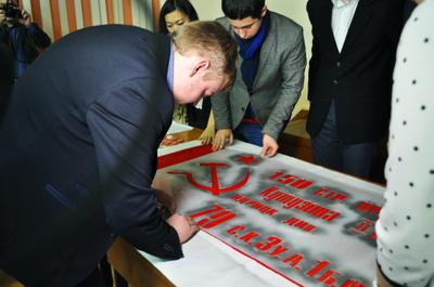 Юрий Афонин, член Президиума, секретарь ЦК КПРФ: «Тула – первый из девяти городов-героев, в которых стартовали уроки Просветительского проекта «Знамя нашей Победы». Эта программа – особе звено в ряду важных патриотических мероприятий, приуроченных к 70-летию Победы советского народа над фашизмом, которое мы будем отмечать в будущем году. В ближайшее время уроки проекта начнутся в школах ещё восьми городов-героев: в Москве, Ленинграде, Сталинграде, Смоленске, Мурманске, Севастополе, Новороссийске и Керчи. А благодаря активной поддержке лидера нашей партии Геннадия Андреевича Зюганова, далее уроки пройдут и во всех регионах Российской Федерации. В итоге, по нашим подсчётам, за время проведения проекта будет сделано более 20 000 кумачовых знамён, а всего в акции примут участие около 100 000 российских школьников».