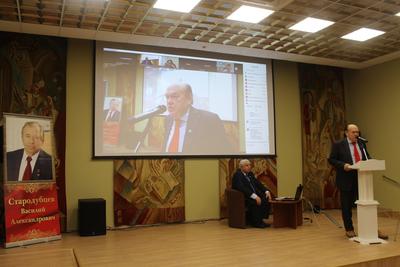 От лица Председателя ЦК КПРФ Г.А. Зюганова и всех российских коммунистов участников чтений поприветствовал Ю.В. Афонин. Он отметил огромную роль Василия Александровича Стародубцева в развитие нашего государства и Коммунистической партии, его заслуги в возрождении Тульской области, её экономики и социальной сферы.