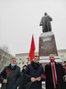 Перед началом конференции делегация коммунистов во главе с Ю.В. Афониным и первым секретарём Мурманского обкома КПРФ, руководителем фракции КПРФ в областной Думе Г.В. Степахно возложила цветы к памятнику В.И. Ленину.