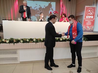 В начале работы конференции Ю.В. Афонин вручил партийные билеты вновь вступившим в КПРФ товарищам и награды заслуженным активистам и ветеранам партии.