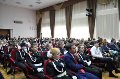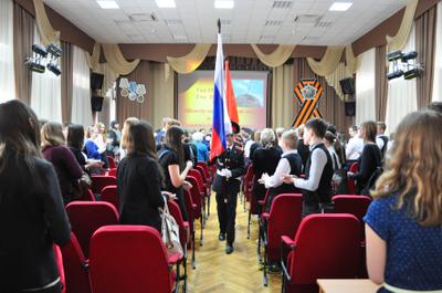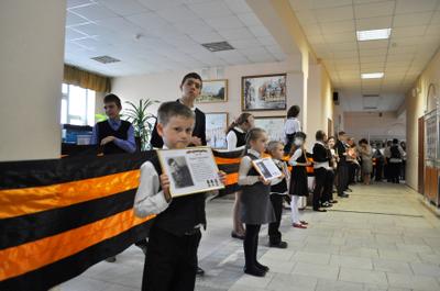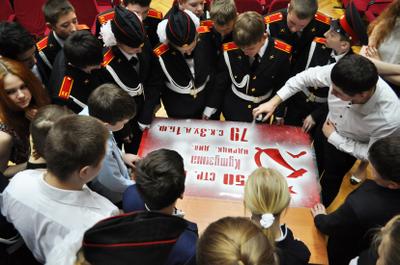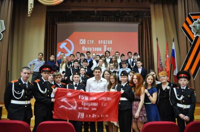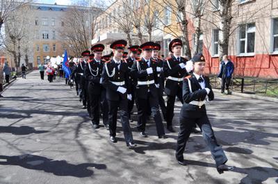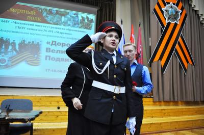 Завершилось мероприятие вручением удостоверений ученикам кадетских классов, а также торжественным шествием акции «Бессмертный полк». Под военную музыку, вслед за Государственным флагом РФ и Знаменем Победы, ученики и педагоги гимназии прошли по плацу школы, неся в руках портреты своих воевавших предков. Гордостью этой акции стала 90-метровая Георгиевская лента, которую школьники собственноручно изготовили вместе со своими учителями. В конце шествия гимназисты выпустили в небо 70 воздушных шаров и белых голубей – по числу лет, прошедших с Великого Мая 1945 года.