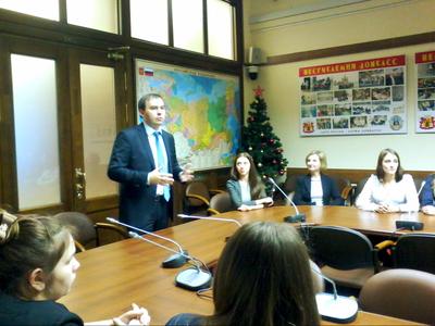 Гости смогли не только увидеть здание Госдумы, но и пообщаться лично с депутатом Государственной Думы, секретарем и членом Президиума ЦК КПРФ Ю.В. Афониным. Юрий Вячеславович рассказал слушателям о работе фракции Коммунистической партии, ознакомил студентов с рядом законопроектов, предлагаемых Компартией. Особое внимание он уделил Молодежной программе партии и тем ее инициативам, которые касаются интересов молодежи России. Ребята из первых уст узнали, насколько сложна и многогранна работа народных избранников, получили ответы на интересующие их вопросы.