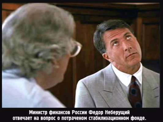- Из–за проблем в экономике министр финансов впал в депрессию, остановил свою машину посреди улицы и теперь угрожает облить себя бензином и поджечь. Он расстраивается из-за того, что никто не верит в его способность спасти нас от кризиса. Чтобы его утешить, мы начали сбор пожертвований.