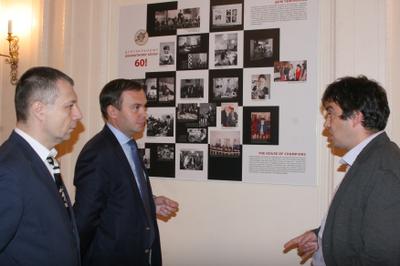 Встреча проходила в Центральном доме шахматиста на Гоголевском бульваре. В ней также принял участие гроссмейстер Игорь Ягупов. Марк Глуховский познакомил гостей с интереснейшей экспозицией Музея шахмат. Залы прекрасно отреставрированного старинного московского особняка помнят пение Шаляпина и игру Рахманинова. После революции здесь сменилось не одно учреждение, пока в 1956 году здание не передали Центральному шахматному клубу СССР. С тех пор оно остается центром шахматной жизни страны. В основу музейной экспозиции легла часть собрания известного коллекционера В.Домбровского, приобретенная Центральным клубом. Афиши и призы, фотографии, книги и картины отражают историю мировых и русских шахмат. Письма, написанные Смыслову поклонниками. Факсимиле записки Капабланки Алехину, где он признает свое поражение. Целый зал занимает выставка призов, памятных знаков, подарков и личных вещей великого советского шахматиста Анатолия Карпова. Почетное место в экспозиции отведено шахматному столику, за которым шла легендарная битва за мировую корону – матч 1984 года между Анатолием Карповым и Гарри Каспаровым.