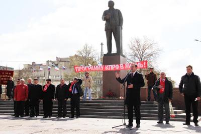 Секретарь ЦК Юрий Афонин передал крымчанам привет и поздравление с праздником от Председателя ЦК КПРФ Геннадия Андреевича Зюганова и отметил, что сегодня мощные, массовые праздничные акции, посвященные дню рождения Ленина, проходят по всей стране – от Владивостока до Калининграда. Это наш ответ на позорный антиленинский законопроект.