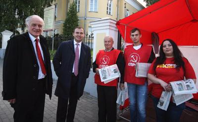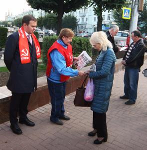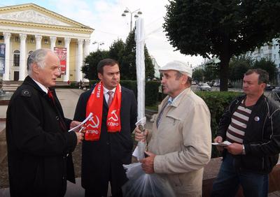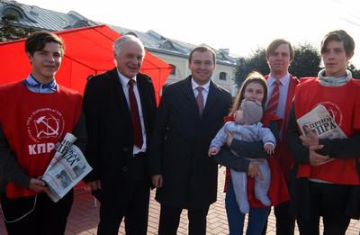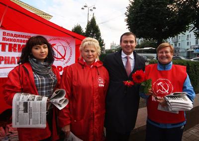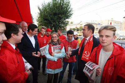 Сотни людей по всей области, в основном молодые коммунисты и комсомольцы, одетые в красные куртки и накидки с символикой КПРФ, одновременно вышли на улицы и раздали землякам десятки тысяч экземпляров агитационных материалов кандидата в губернаторы от Компартии и воззвания лидера КПРФ Геннадия Андреевича Зюганова «Время выбирает социализм».