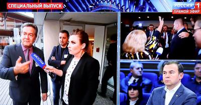Ведущая Ольга Скабеева выходила в прямой эфир передачи из здания Парламентской ассамблеи Совета Европы (ПАСЕ) в Страсбурге. Там случился очередной отвратительный скандал с участием украинских депутатов: с трибуны ПАСЕ они призывали общаться с русскими только в костюмах химзащиты и пожимать руки в резиновых перчатках, потому что, мол, могут отравить. Такое поведение вызвало шок у большинства европейских парламентариев. Когда же Скабеева попыталась взять интервью у украинских представителей в коридорах ассамблеи, вокруг нее устроили настоящий шабаш с пением гимна, нацистскими лозунгами «Слава Украине!» и «зигами». Звучали угрозы в адрес России и непосредственные угрозы жизни журналистки.