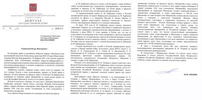 В депутатском запросе, который депутат Государственной Думы, заместитель Председателя ЦК КПРФ Ю. В. Афонин направил Генеральному прокурору Российской Федерации И. В. Краснову, содержатся исторические и юридические аргументы, указывающие на полную несостоятельность позиции господина Титарева. В частности, указывается, что, вопреки фантастическим историческим представлениям омского бизнесмена, Д. М. Карбышев никогда не служил в белой армии. А схожий с карбышевским жизненный путь – служба в Русской императорской армии, участие в Первой мировой войне, вступление в ряды РККА – имеют Г. К. Жуков, К. К. Рокоссовский, И. С. Конев, В. А. Василевский, Р. Я. Малиновский, Ф. И. Толбухин и другие выдающиеся полководцы XX века, являющиеся нашими национальными героями. Это обстоятельство дополнительно подчеркивает абсурдность обвинений в «измене» в адрес Д. М. Карбышева.