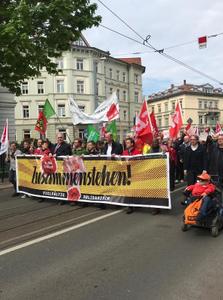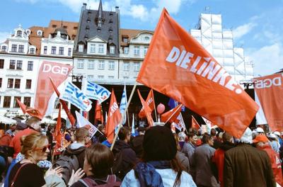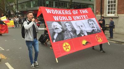 Массовые акции прошли не только в столицах, но и во многих других городах. Например, мне прислали фото из бельгийского Брюгге, где 1 мая состоялась крупная манифестация. Мощно выступили германские Левые, особенно в восточных землях, в частности, Тюрингии и Саксонии. Причём, в Эрфурте - полиции пришлось служить живым щитом между двумя шествиями: левых и профсоюзов, с одной стороны, и крайне правых из «Альтернативы для Германии», с другой. А на лондонской демонстрации левых сил можно было увидеть портреты Маркса-Энгельса-Ленина-Сталина и симпатизантов СССР.
