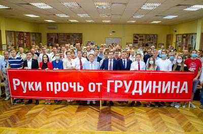 У входа в Дом Знаний в это утро было много красных флагов, которые не могли не заметить прохожие, водители и пассажиры проезжающих автомобилей. В зале участники форума сделали фото с большой растяжкой «РУКИ ПРОЧЬ ОТ ГРУДИНИНА», выразив солидарность с преследуемым властью директором знаменитого на всю страну совхоза имени Ленина и народным кандидатом в президенты 2018 года.
