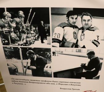 На выставке представлено большое число уникальных фотографий и личные вещи Анатолия Владимировича Тарасова.