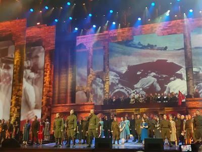 В память о подвиге советского народа и Красной Армии в борьбе с немецко-фашистскими захватчиками прозвучали песни в исполнении Василия Ланового, Льва Лещенко, Тамары Гвердцители, хора Академического ансамбля песни и пляски Российской армии им. А.В. Александрова, Государственного академического Кубанского казачьего хора, Государственного академического русского народного хора им. П.Е. Пятницкого и других известных исполнителей. Участие в концерте приняли ведущие артисты театра и кино, прославленные творческие коллективы России.