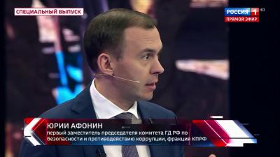 Первый заместитель Председателя ЦК КПРФ Ю. В. Афонин принял участие в программе «60 минут» на телеканале «Россия-1».
