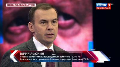 Первый заместитель Председателя ЦК КПРФ Ю. В. Афонин принял участие в программе «60 минут» на телеканале «Россия-1».