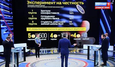 Второй темой стало исследование Высшей школы экономики, результаты которого сводятся к тому, что бедные лгут больше, чем богатые. Исследователи из ВШЭ использовали три группы людей – 96 студентов, 221 зрителя кинофестиваля и 230 сотрудников крупного банка. Студенты рассматривались как заведомо бедные, зрители кинофестиваля – как некие усредненные граждане, а сотрудники крупного банка – как представители наиболее зажиточной части общества. Каждому испытуемому дали по 5 монет и попросили их бросить. Авторы исследования не могли видеть, как упали монеты, а испытуемые должны были сообщить им, сколько выпало «орлов» и сколько «решек». При этом испытуемый знал, что, если он сообщит о выпадении 5 «орлов», то получит 500 рублей, если о 4 «орлах» – 100 рублей, а если доложит, что выпало меньше 4 «орлов», – не получит ничего. Ясно, что общее число выпавших «орлов» и «решек» в каждой из групп достаточно точно предсказывается теорией вероятности. Исследователи сравнили предсказанный таким образом результат с тем, что им сообщили испытуемые. И обнаружили, что бедные студенты лгали о результате бросания монет больше всех, а богатые банковские служащие – меньше всех.