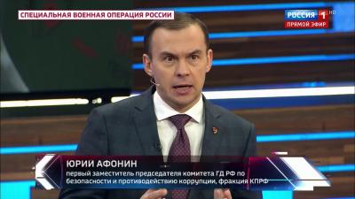 Первый заместитель Председателя ЦК КПРФ Ю.В. Афонин принял участие в программе «60 минут» на телеканале «Россия-1».
