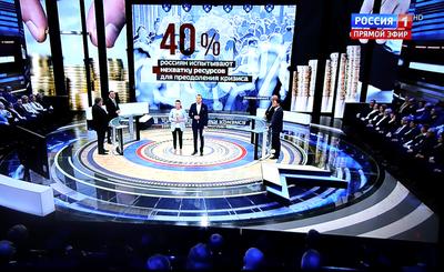 В третьей части программы традиционно перешли к обсуждению российских реалий. На суд экспертов было представлено исследование РАНХиГС о том, как наши сограждане переживают кризис. По данным социологов, 40% населения так и не смогли адаптироваться к трудной экономической ситуации и стали жить хуже. Большинство в этой категории составляют пожилые люди, жители малых городов и сел, люди без высшего образования – рабочие, рядовые работники торговли, безработные. В то же время, утверждают исследователи, подавляющая часть людей моложе 45 лет сообщает, что их положение не ухудшилось, а то и улучшилось.