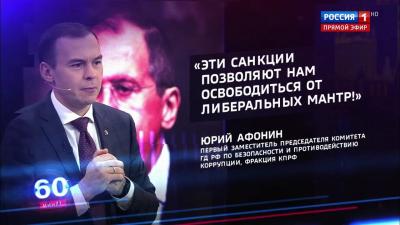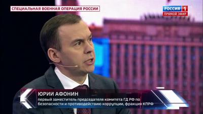 Первый заместитель Председателя ЦК КПРФ Ю. В. Афонин принял участие в программе «60 минут» на телеканале «Россия-1».